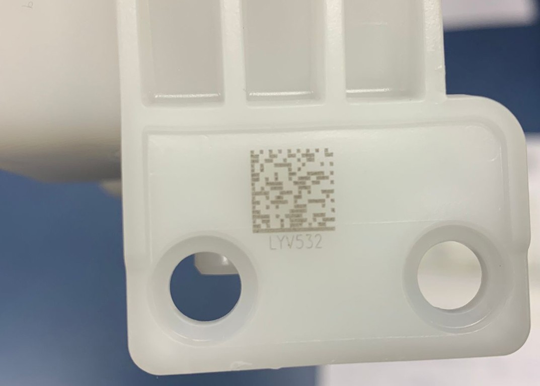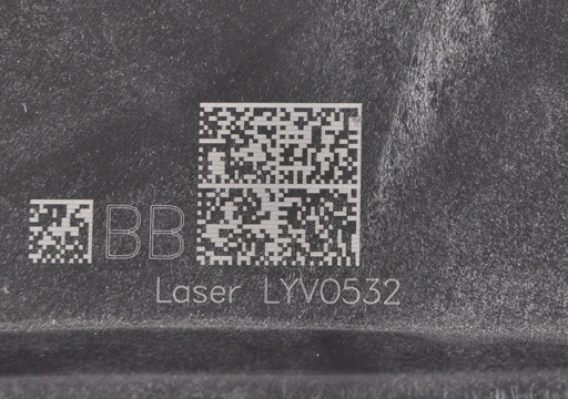 Marking of plastic PP-GF30 part with LV20 laser