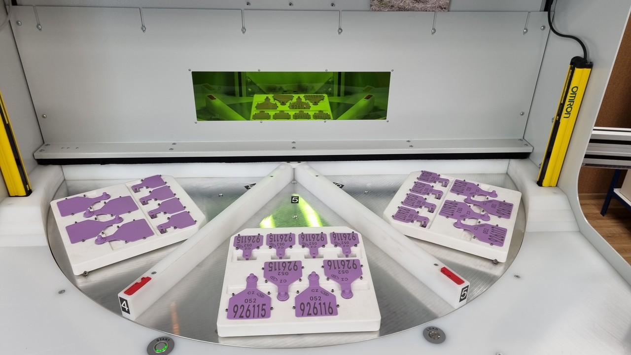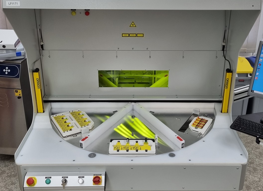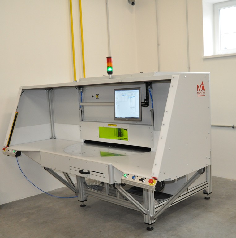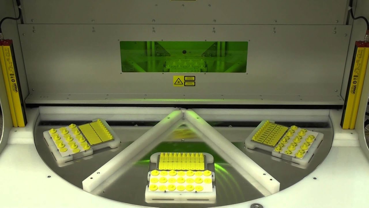 Laser marking station XL with automatic rotating carousel and fiber laser.- Laser sources fiber LF, vanadate LV or CO2 LM