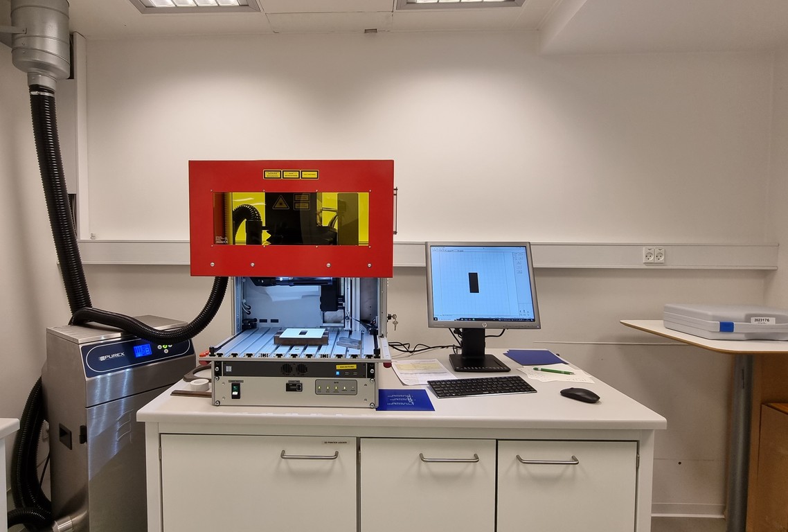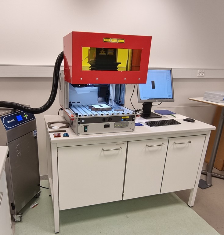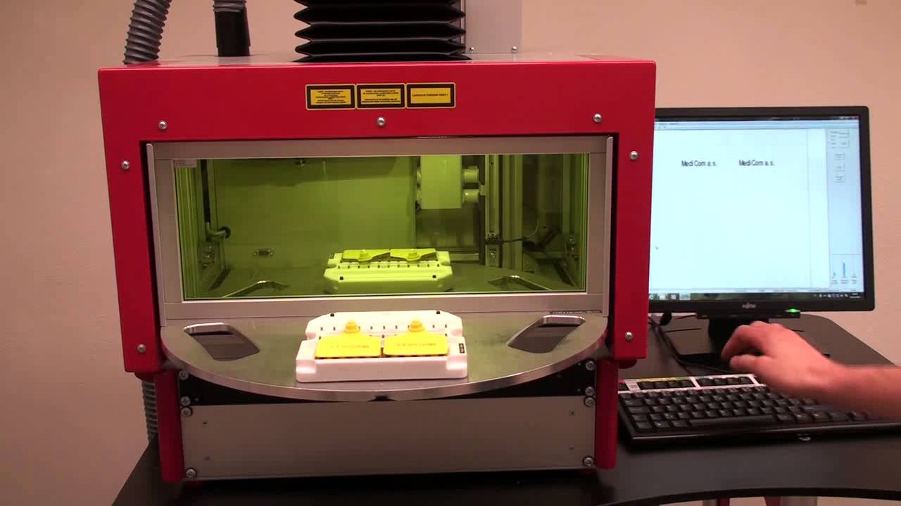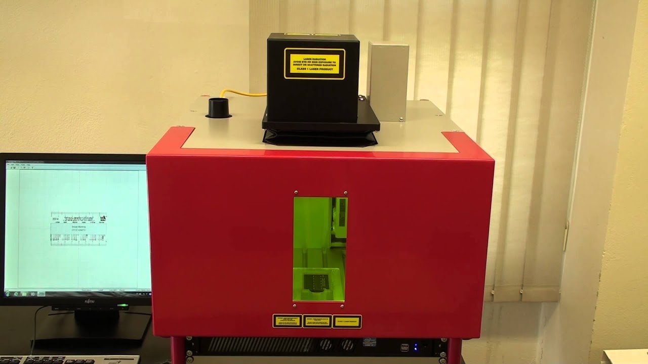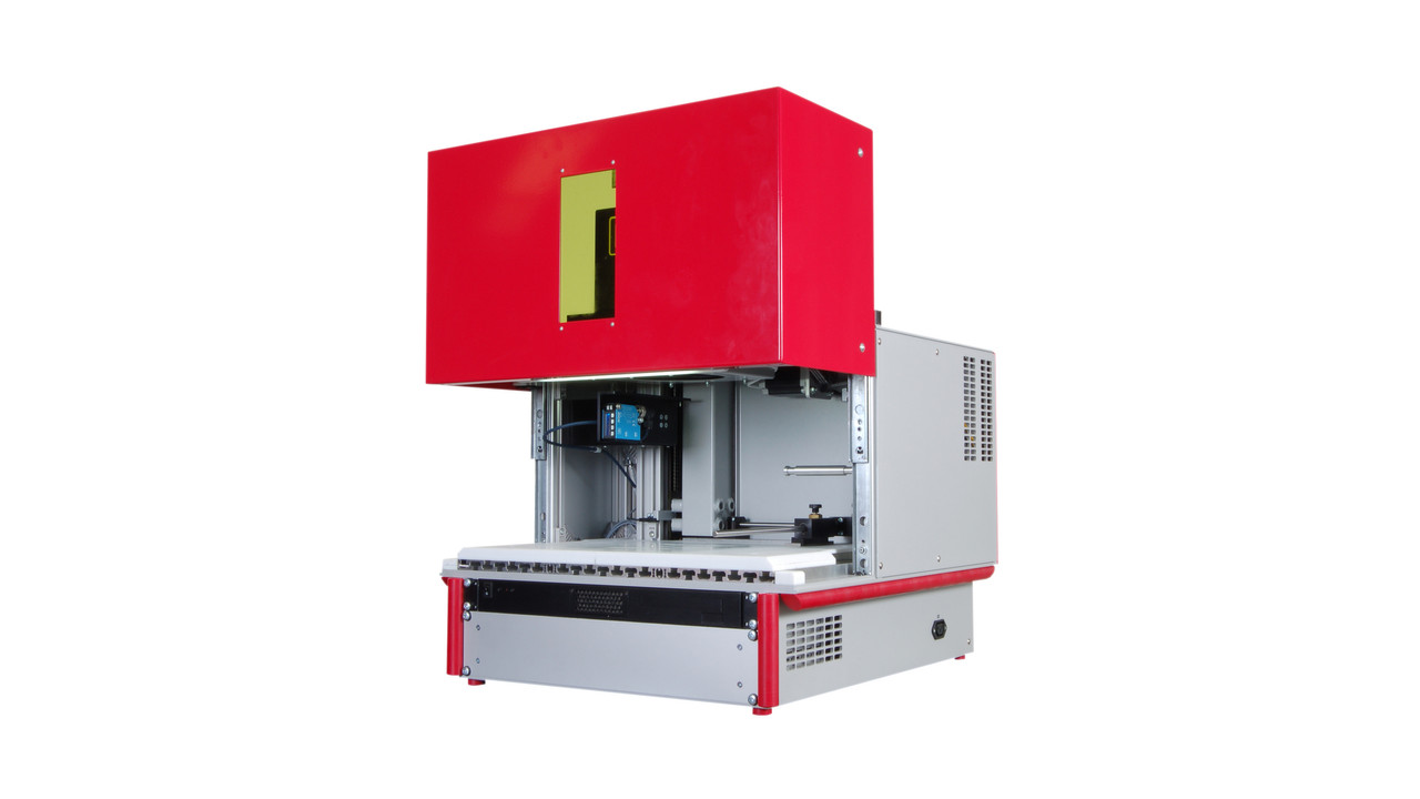 Table laser marking machine with fiber laser.- Compact table laser marking station