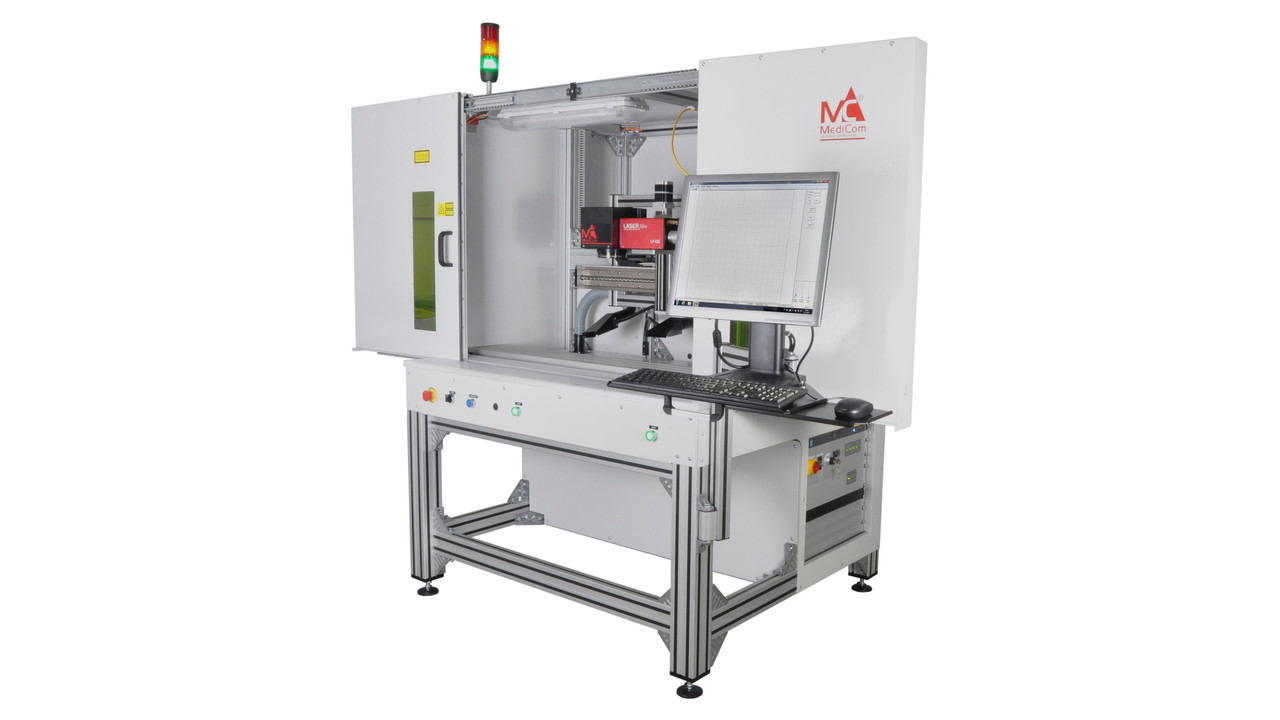 Laser marking station with sliding doors and fiber laser- Industrial laser marking station XL