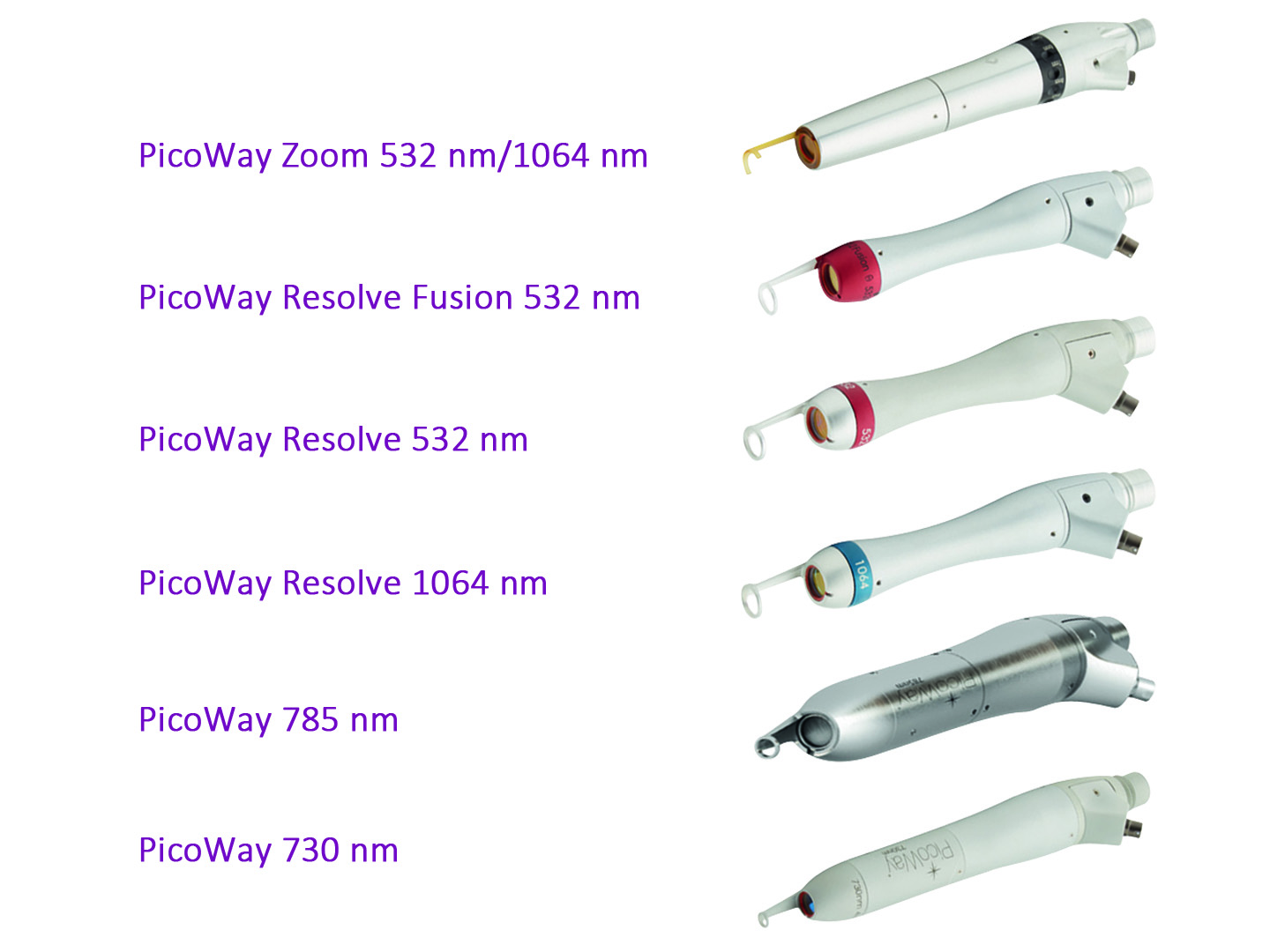 Pikosekundový laser pro benigní pigmentové léze a odstranění tetovážeSystém PicoWay se třemi vlnovými délkami 1064 nm, 785 nm a 532 nm.