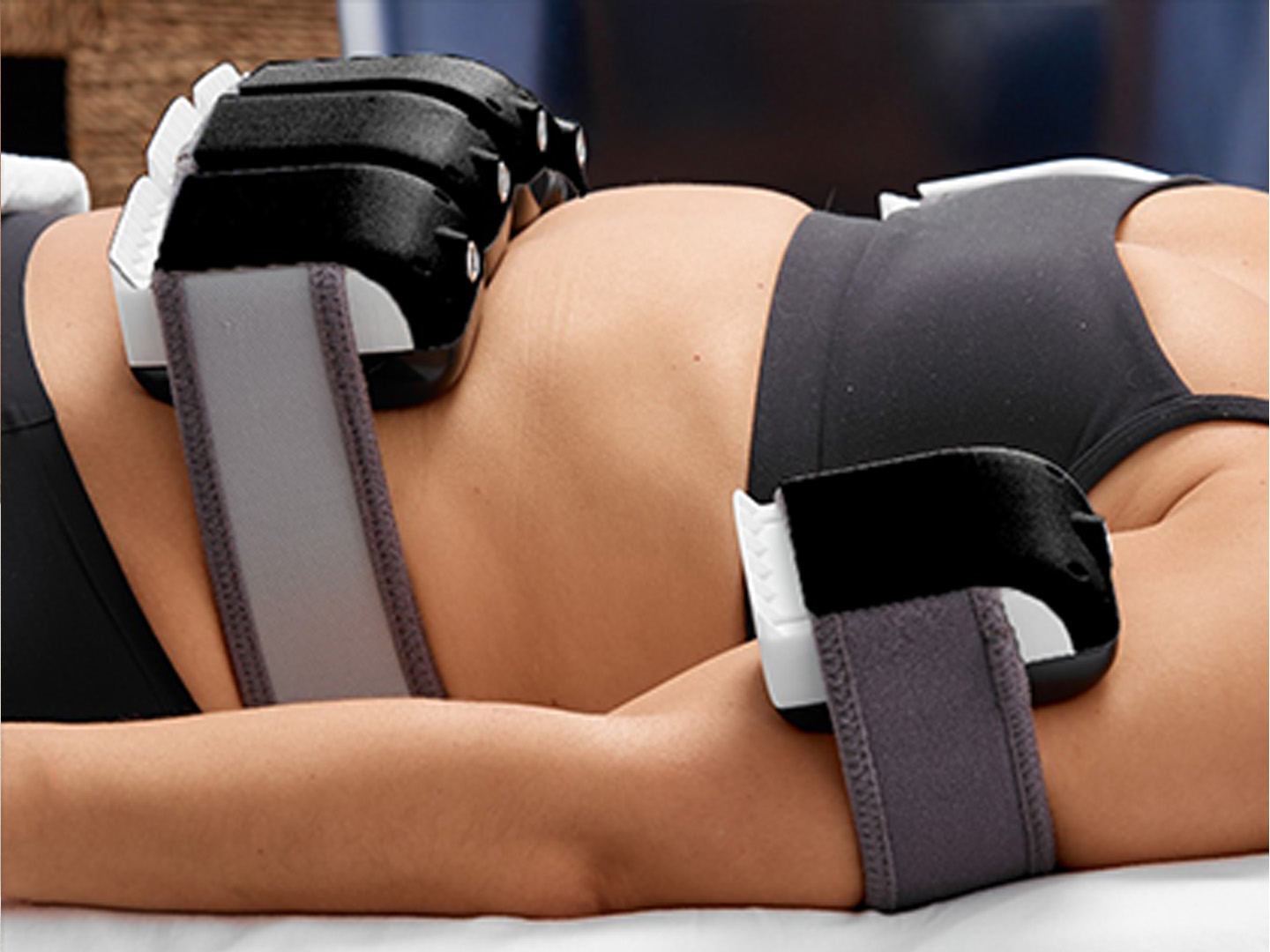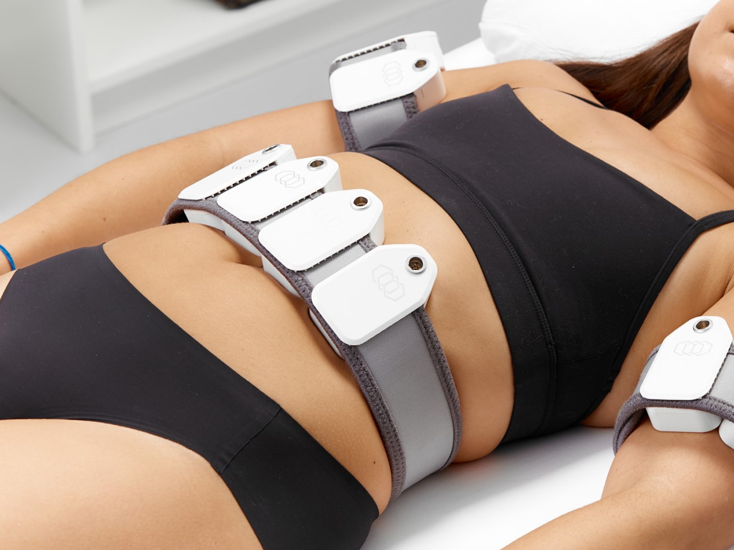 - Kombinace více hands-free aplikátorů a nastavitelných fixačních pásů umožňuje provádět simultánní ošetření na více oblastech těla.