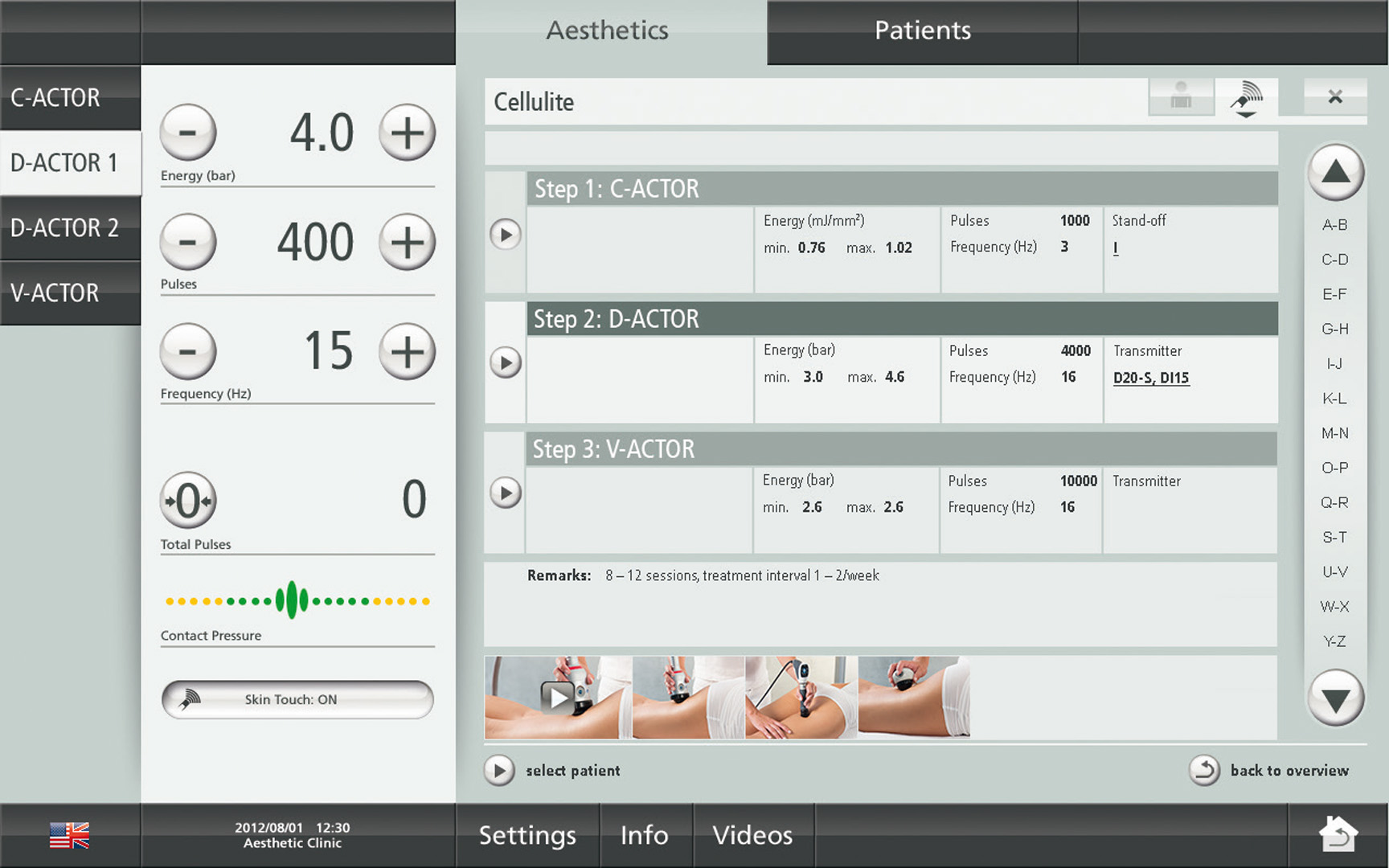 Modulární fokusovaná a radiální rázová vlna pro estetickou medicínu a dermatologiiPro maximálně snadné použití využívá CELLACTOR® SD1 Ultra moderní technologii dotykové obrazovky s intuitivním uživatelským rozhraním na jasně strukturované obrazovce umožňují rychlé a intuitivní ošetření.