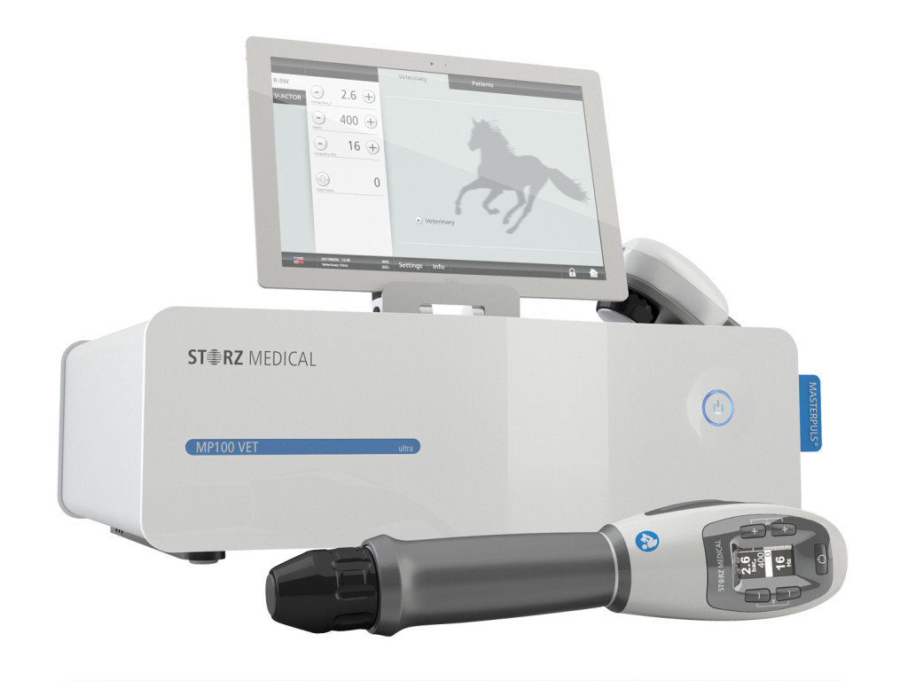 Radiální veterinární rázová vlnaSpolehlivý, vysoce kvalitní systém AWT® nové řady MASTERPULS® MP VET ultra přesvědčí kompaktními rozměry, vynikajícím designem a integrovaným, extrémně tichým kompresorem Air Power, určený pro ošetření pohybového aparátu koní, psů a koček.