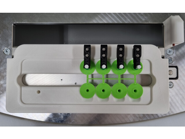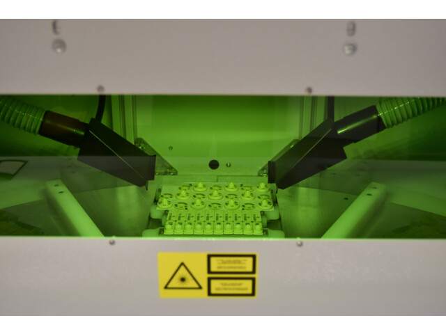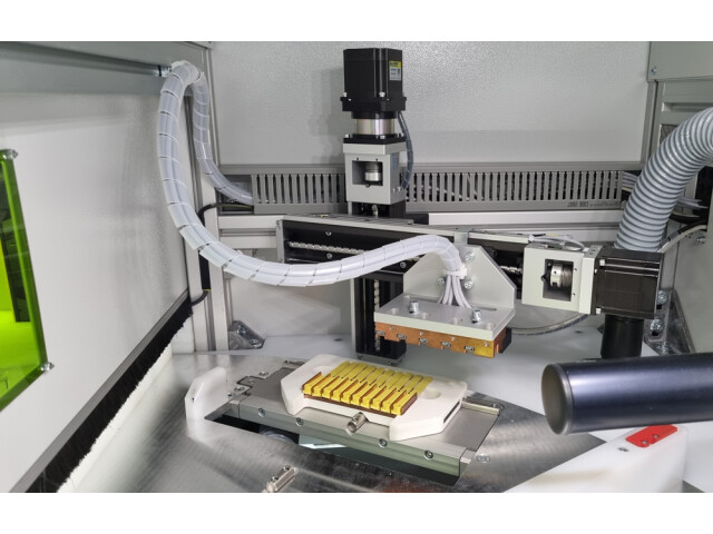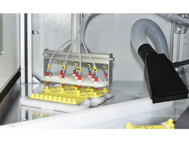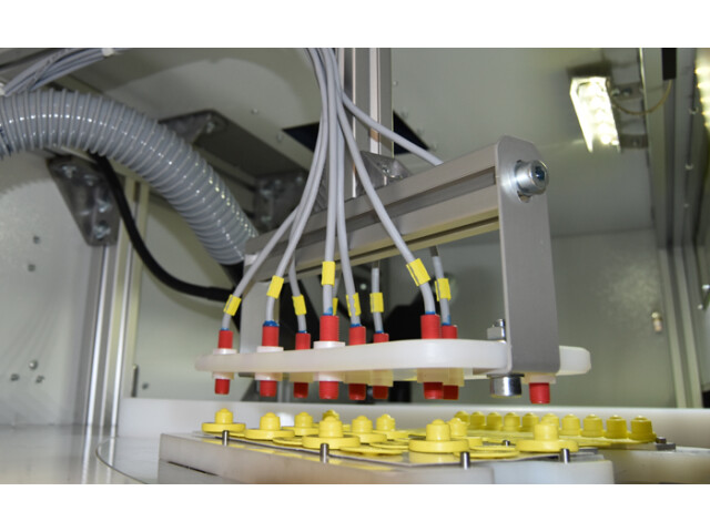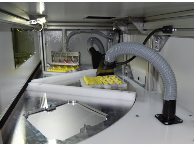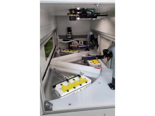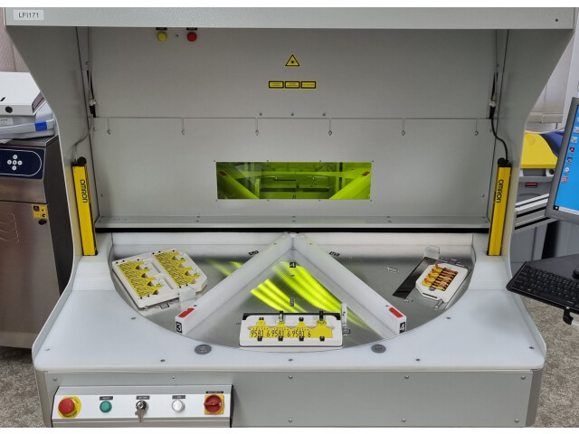 3 positions Inside of LFI100XL with 1250mm carousel, 1) RFID multi-programmer, 2) marking position, 3) DMC reader for codes verification