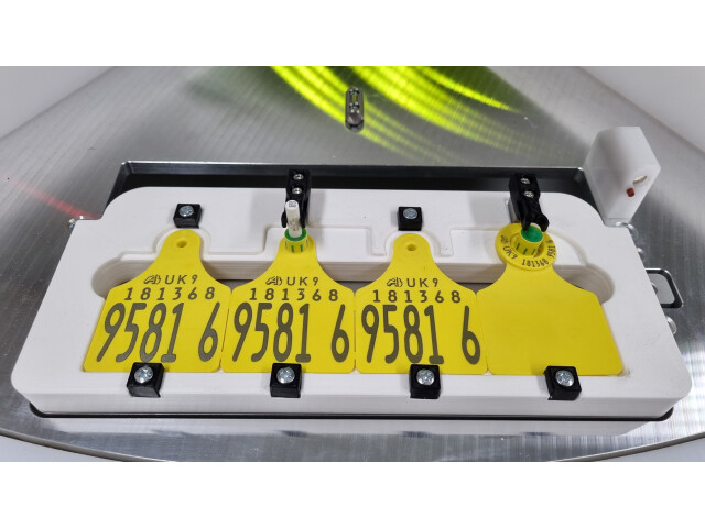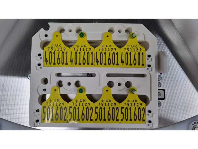 Example of flat tags marking, DMC marking and side bottle marking of BVD tags – lifting pallets system used on LF100XL with 1250mm carousel