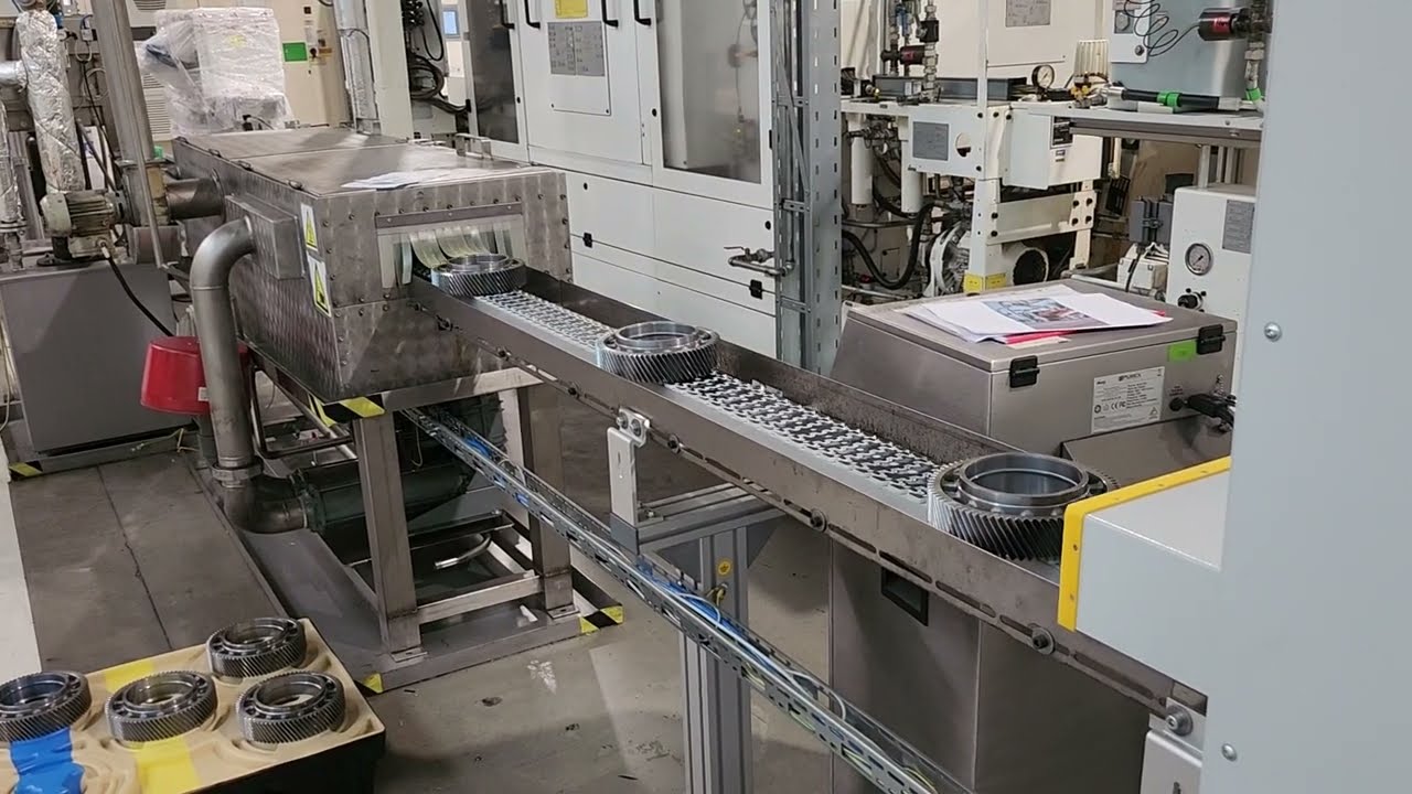 Automatická laserová značící stanice LF30MW 1200 pro automatické značení ozubených koncových kol diferenciálu.