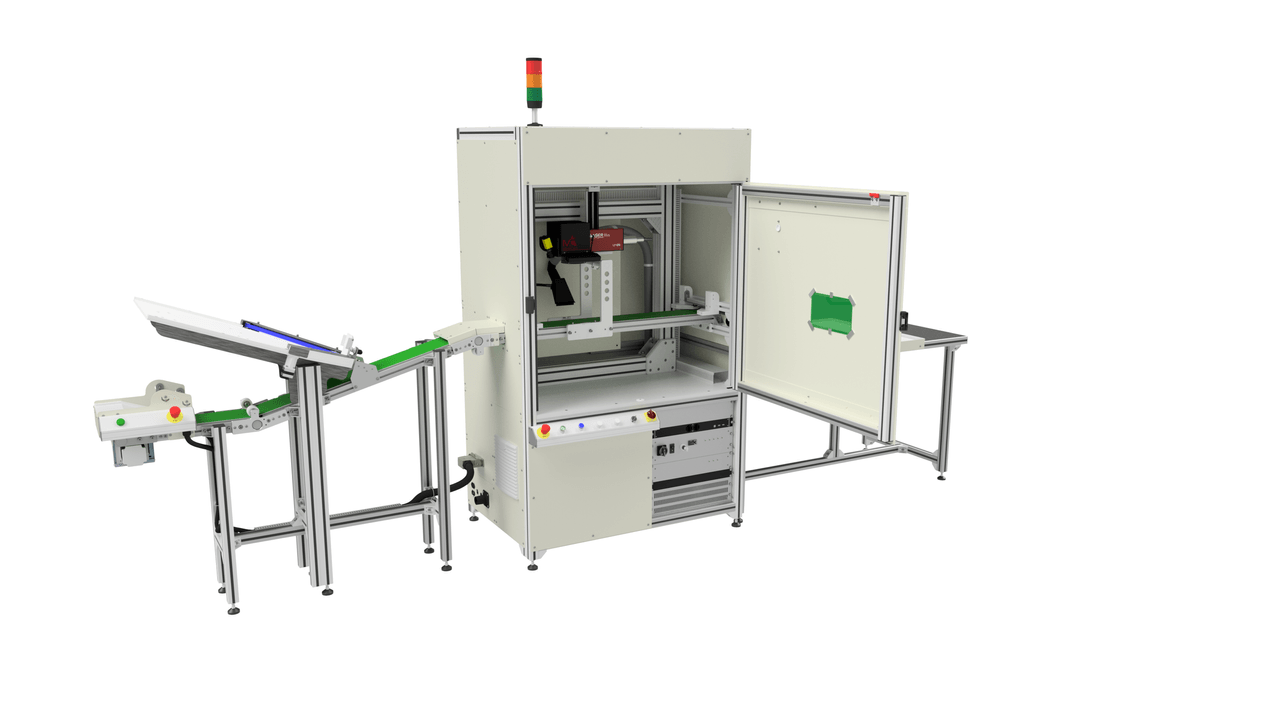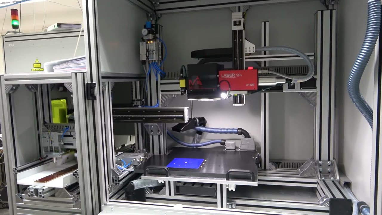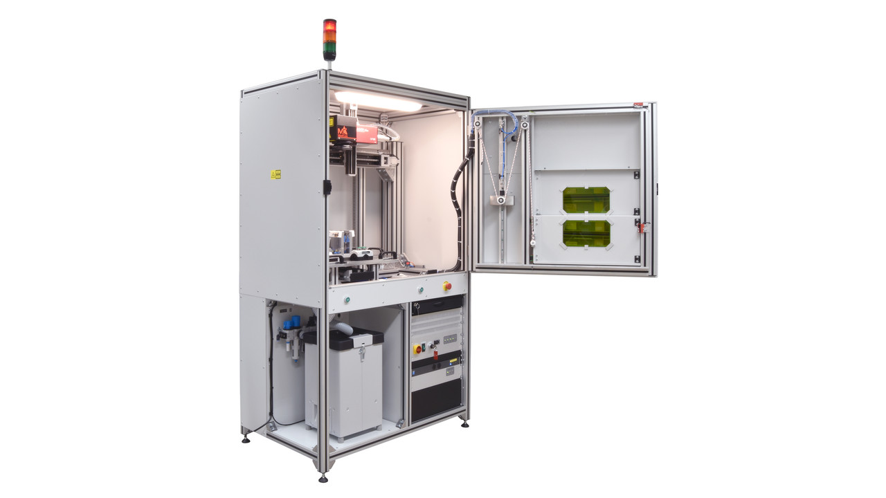 Průmyslová laserová popisovací stanice s automatickými dveřmi a výsuvným stolkem- Průmyslová laserová popisovací stanice LF-MW 1200